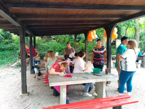 - an verschiedenen Stationen konnten die Kinder basteln, malen und toben